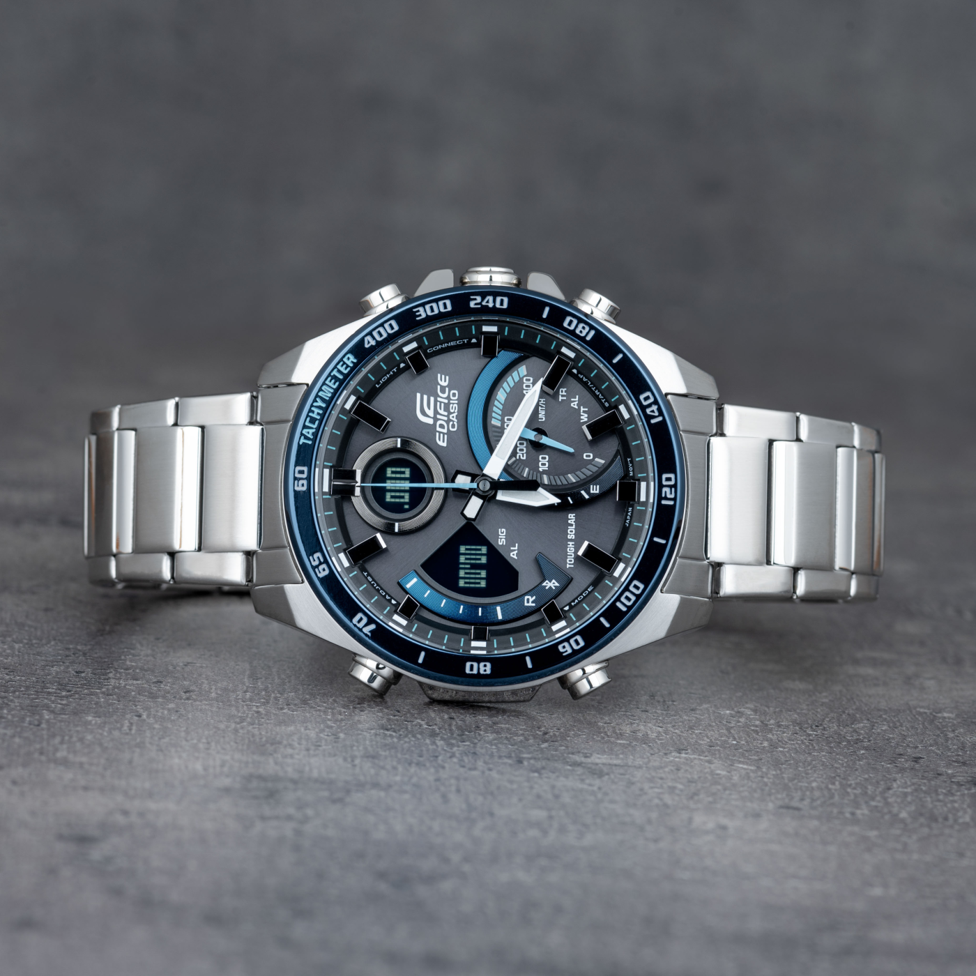 - Öröknaptár, Megvilágítás, Világidő, Tachiméter, Párosítási lehetőség iOS és Android rendszerrel, Lumineszcens indexek, 24 órás al-számlap, Stopper, Bluetooth, Lumineszcens mutatók, Akkumulátor töltöttség jelző, Riasztó