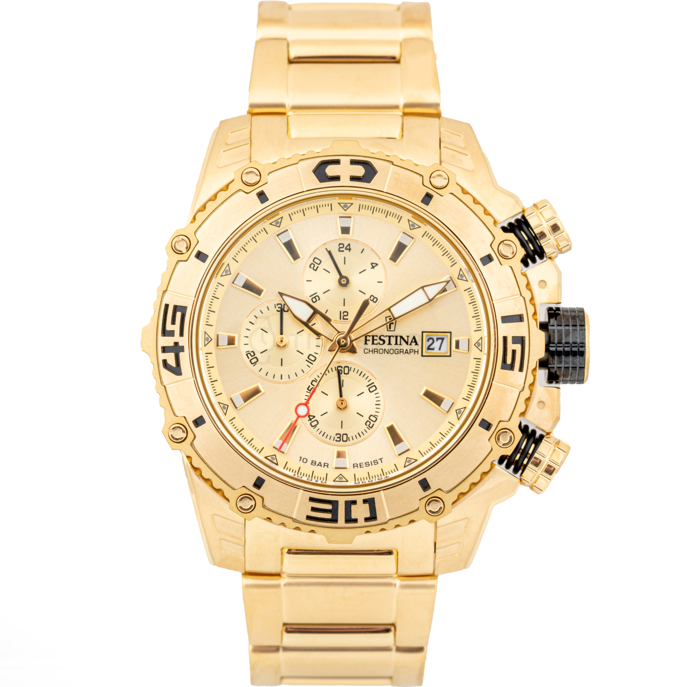 Egy szép férfi karórát vásárolna, amely pompásan bemutatja a kiegészítőkhöz való érzékét? Ez a 20492/1 kódú modell pontosan az, amit szeretne. Csodáljuk meg részletesebben az adott modell tulajdonságait. E modell hangsúlyos eleme a tok, melynek színe ennél az óránál arany és az anyaga acél PVD bevonattal. Az elsőosztályú acél PVD bevonattal szíjat az adott darabnál mutatós arany díszíti. Már ne keressen tovább ez a gyönyörű Festina karóra határozottan nem okoz csalódást.