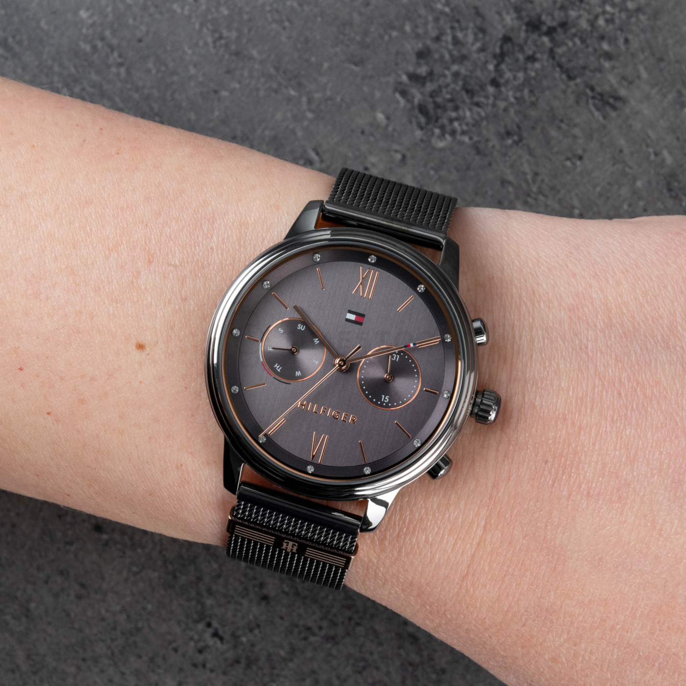 Egy pompás karóra tagadhatatlanul sokat számítő divat kiegészítő és az ábrázolt darab Tommy Hilfiger-től ezt aláírja. Ezt a kiválasztott Tommy Hilfiger 1782304 jelzésű karórát egy jól olvasható számlap jellemzi. és a mérete 38 x 8,95 mm. A tok színe ennél a modellnél finom szürke, miközben a tok meghatározó anyaga rozsdamentes acél. Rozsdamentes acél szíj köti össze az óra tokját, gyönyörű színben, amely az 1782304 kódú oránál szürke. Ez a Tommy Hilfiger -től származó egyedi darab vélhetően fedlobja gyűjteményét és nem egy hölgy irigyelni fogja.