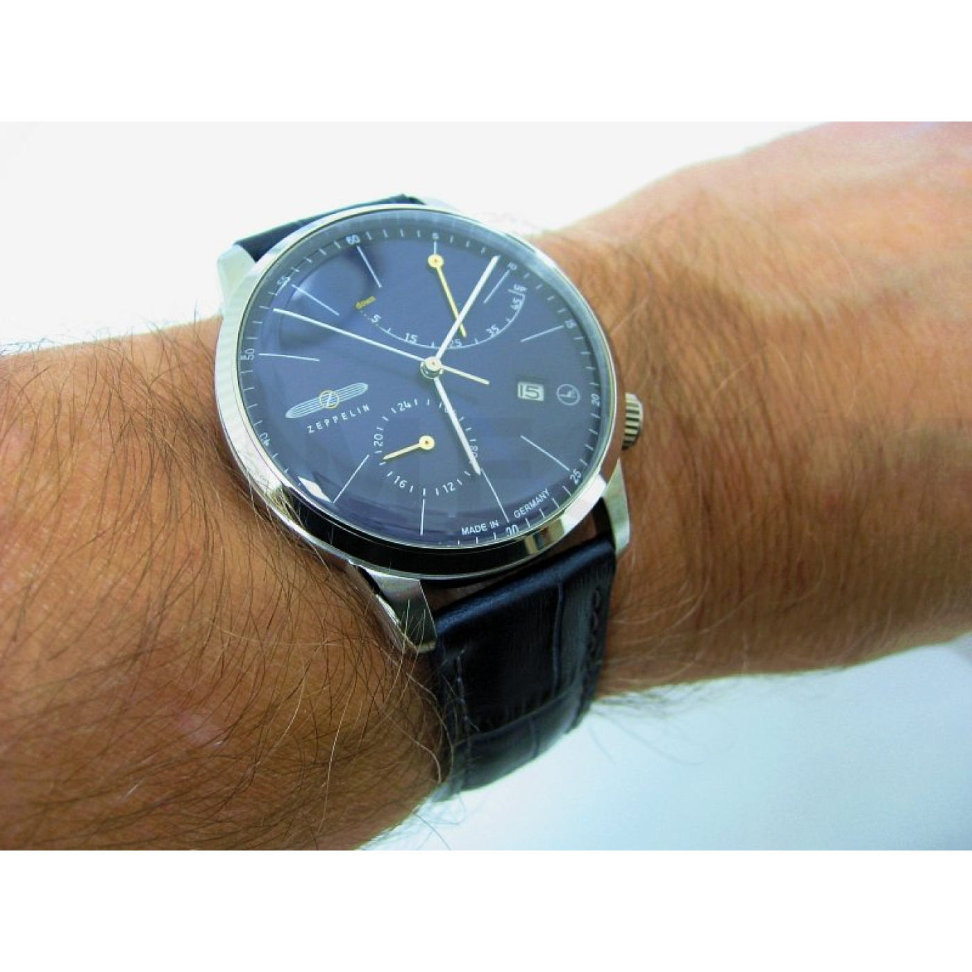 A férfi Zeppelin karóra, azaz a számlapja szerves részét képezi az ikonikus logó egy léghajó képével. Közvetlen utalás a legendás léghajó úttörőre, Ferdinand von Zeppelin-re, akiről maga az óramárka is el van nevezve. A 20. század időszakában, amikor a léghajók hatalmas fellendülést éltek meg, ezek a fenomenális „repülő gépek” a legnemesebb közlekedési mód megtestesítői voltak.