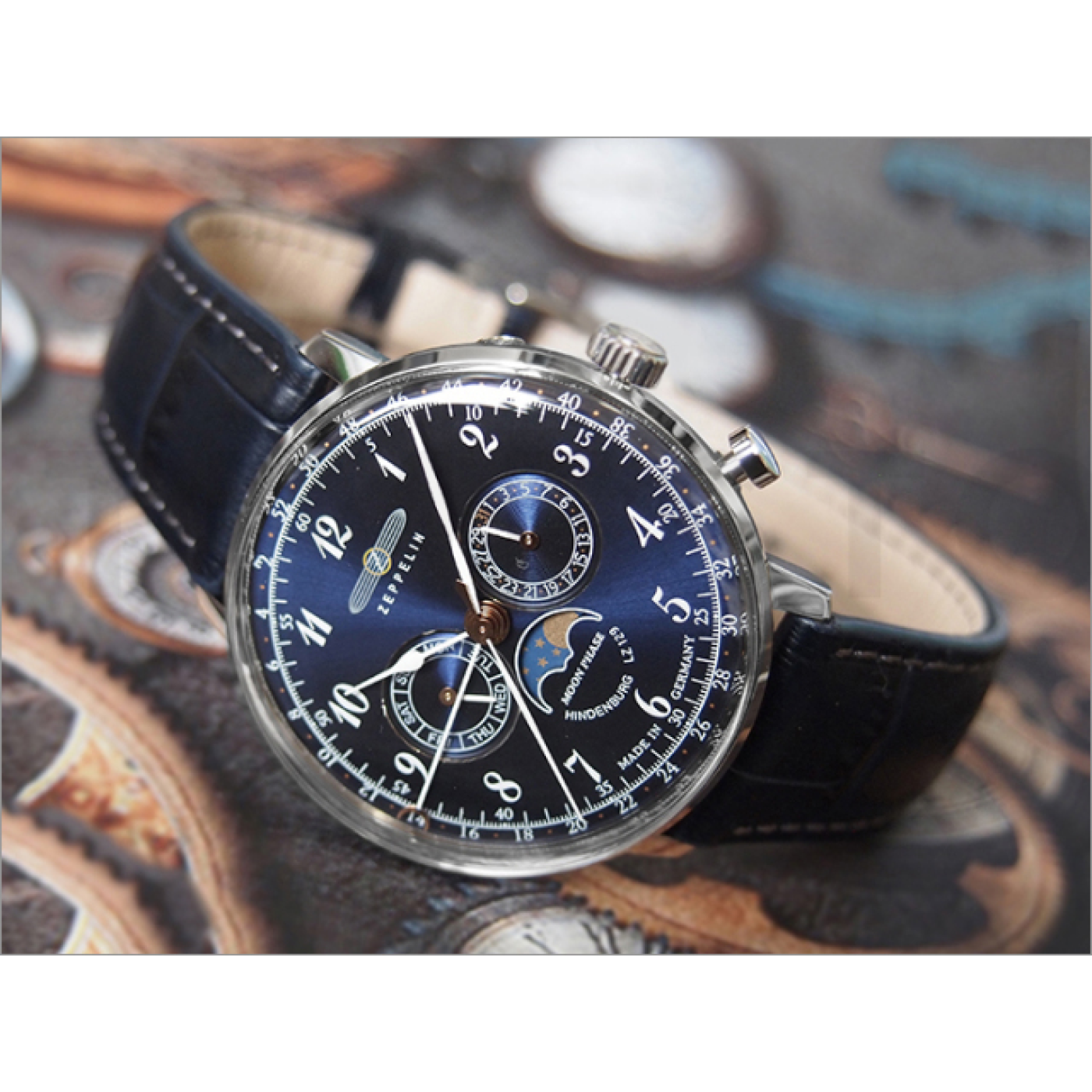 A férfi Zeppelin karóra, azaz a számlapja szerves részét képezi az ikonikus logó egy léghajó képével. Közvetlen utalás a legendás léghajó úttörőre, Ferdinand von Zeppelin-re, akiről maga az óramárka is el van nevezve. A 20. század időszakában, amikor a léghajók hatalmas fellendülést éltek meg, ezek a fenomenális „repülő gépek” a legnemesebb közlekedési mód megtestesítői voltak.