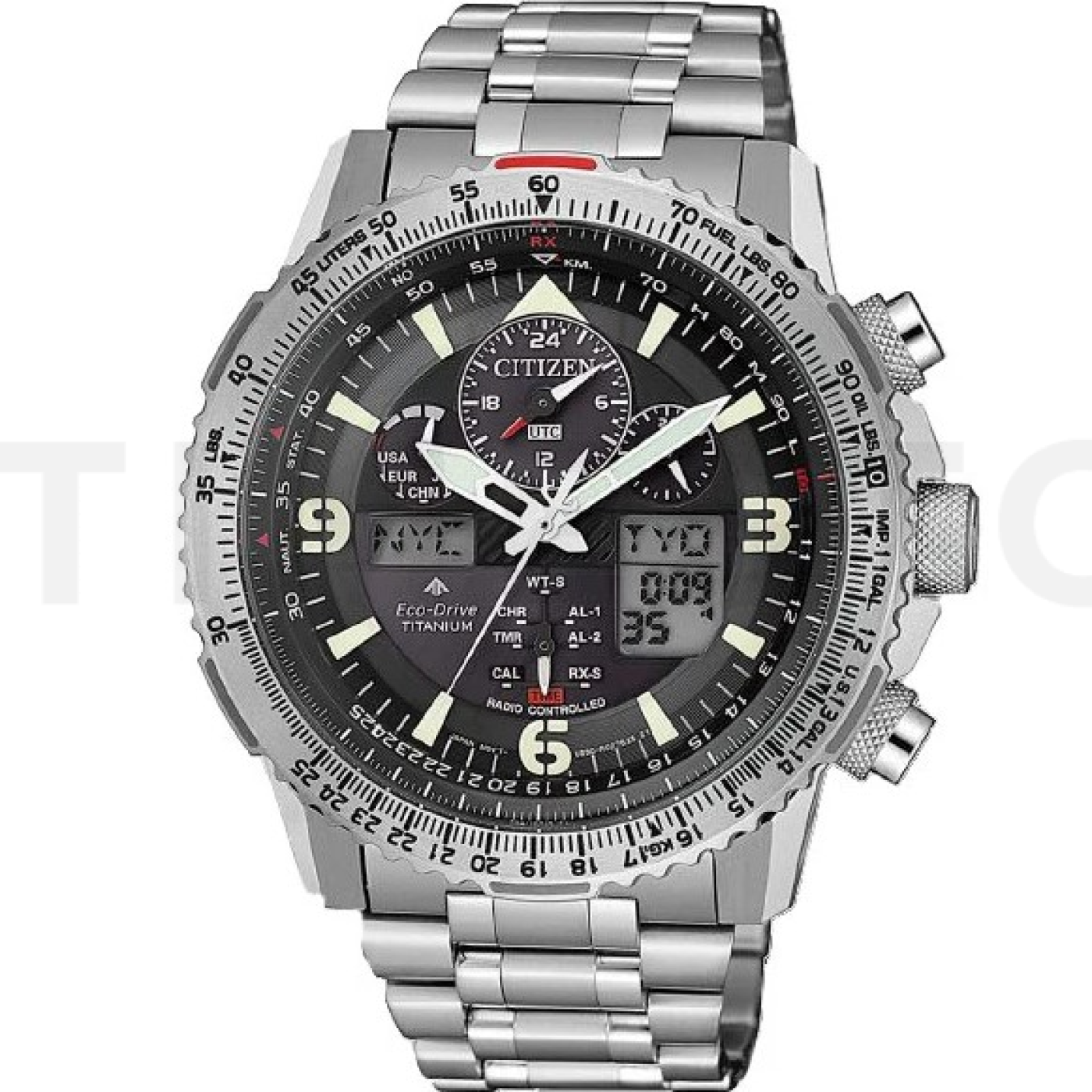 - Akkumulátor töltöttség jelző, Öröknaptár, Világidő, Megvilágítás, Rádióval vezérelt, Riasztó, Kronográf