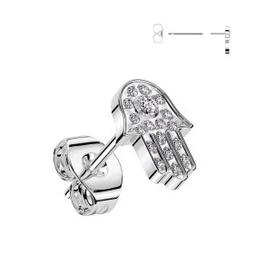 Fatima kéz alakú titán puzettás fülbevaló cirkóniákkal - Single TS-EA-0043